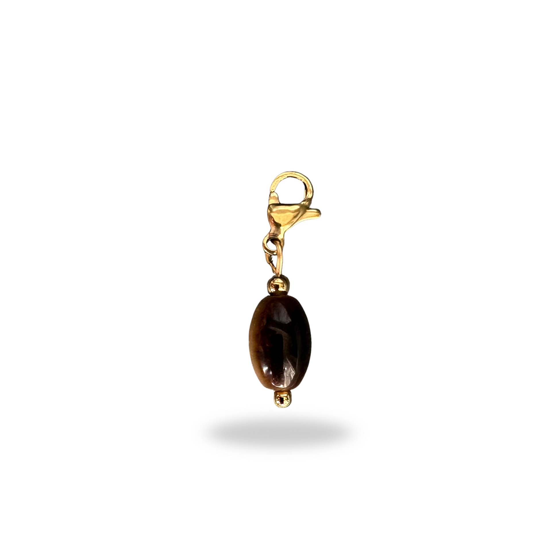 Le charm Tigre en acier inoxydable orné d’une pierre œil de tigre ovale. Un bijou au design épuré, symbole de force et de protection, parfait pour un style affirmé et naturel.
